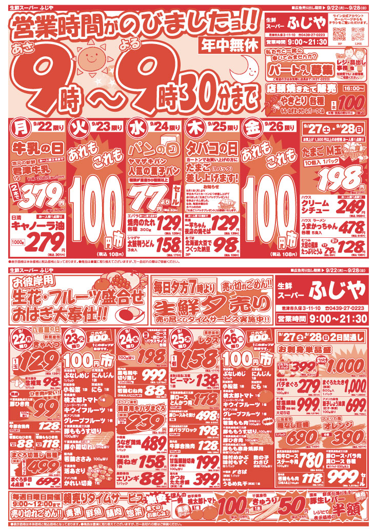 【最新チラシ】9/22~ - 生鮮スーパーふじや